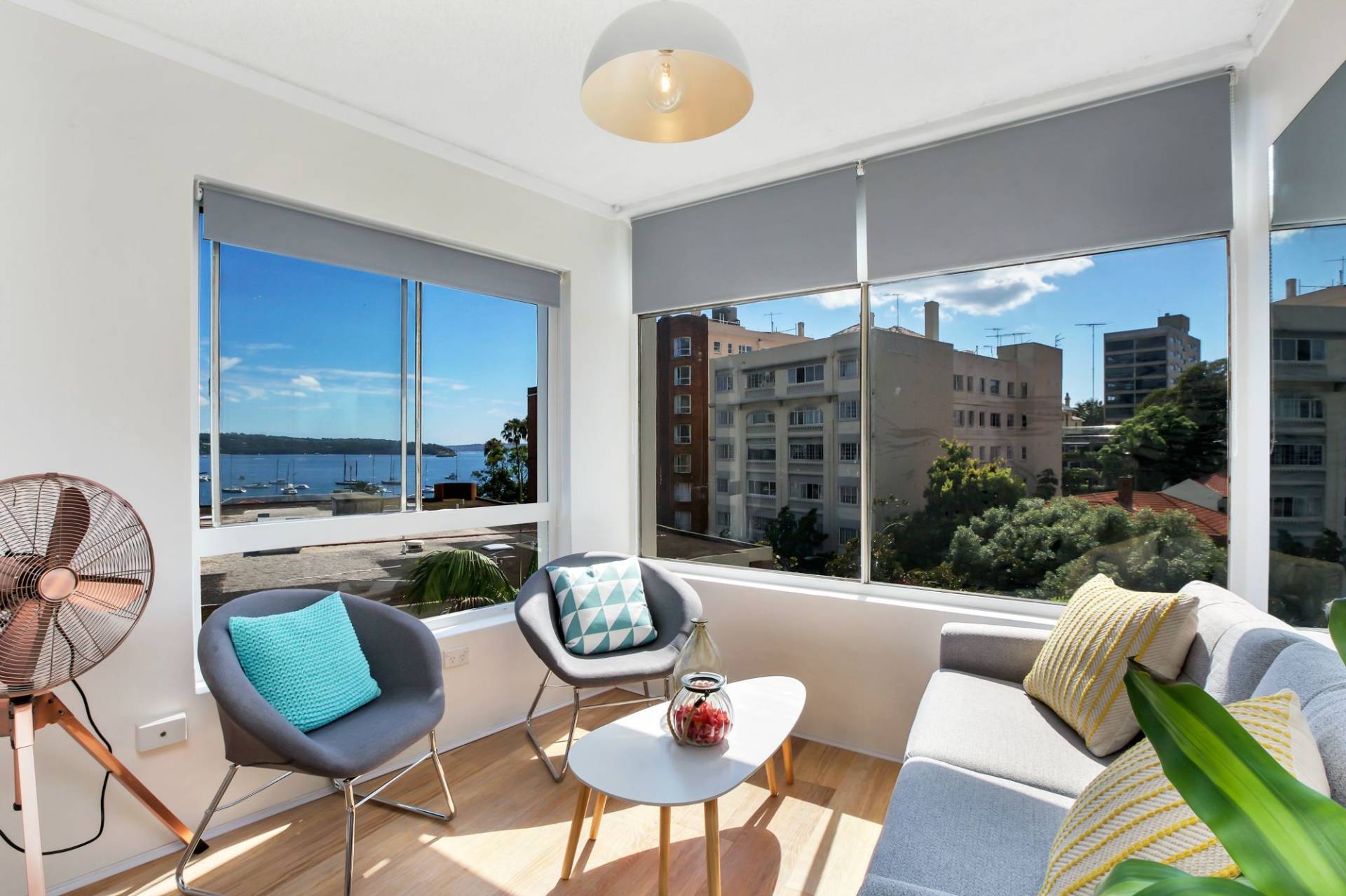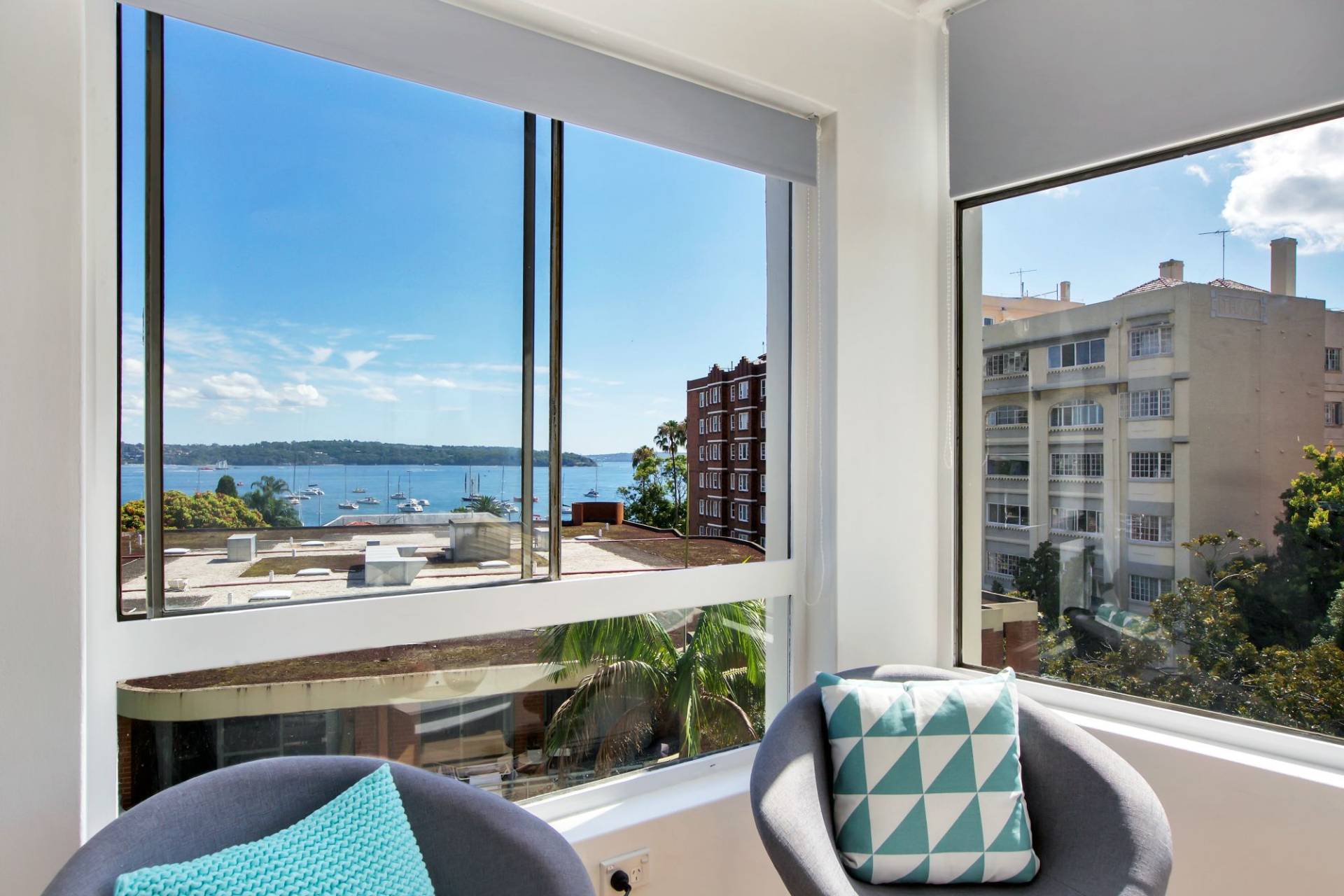Views of Elizabeth Bay from the bedroom and living area