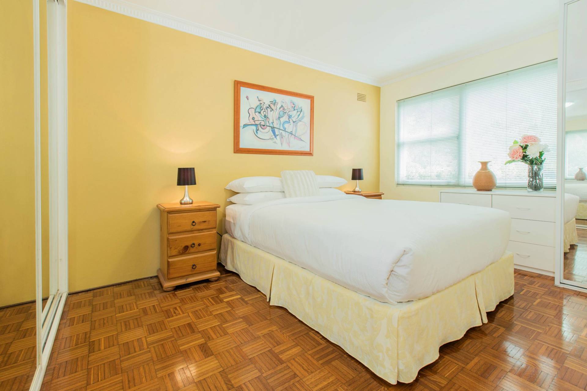 Airy bedroom with built-in wardrobes
