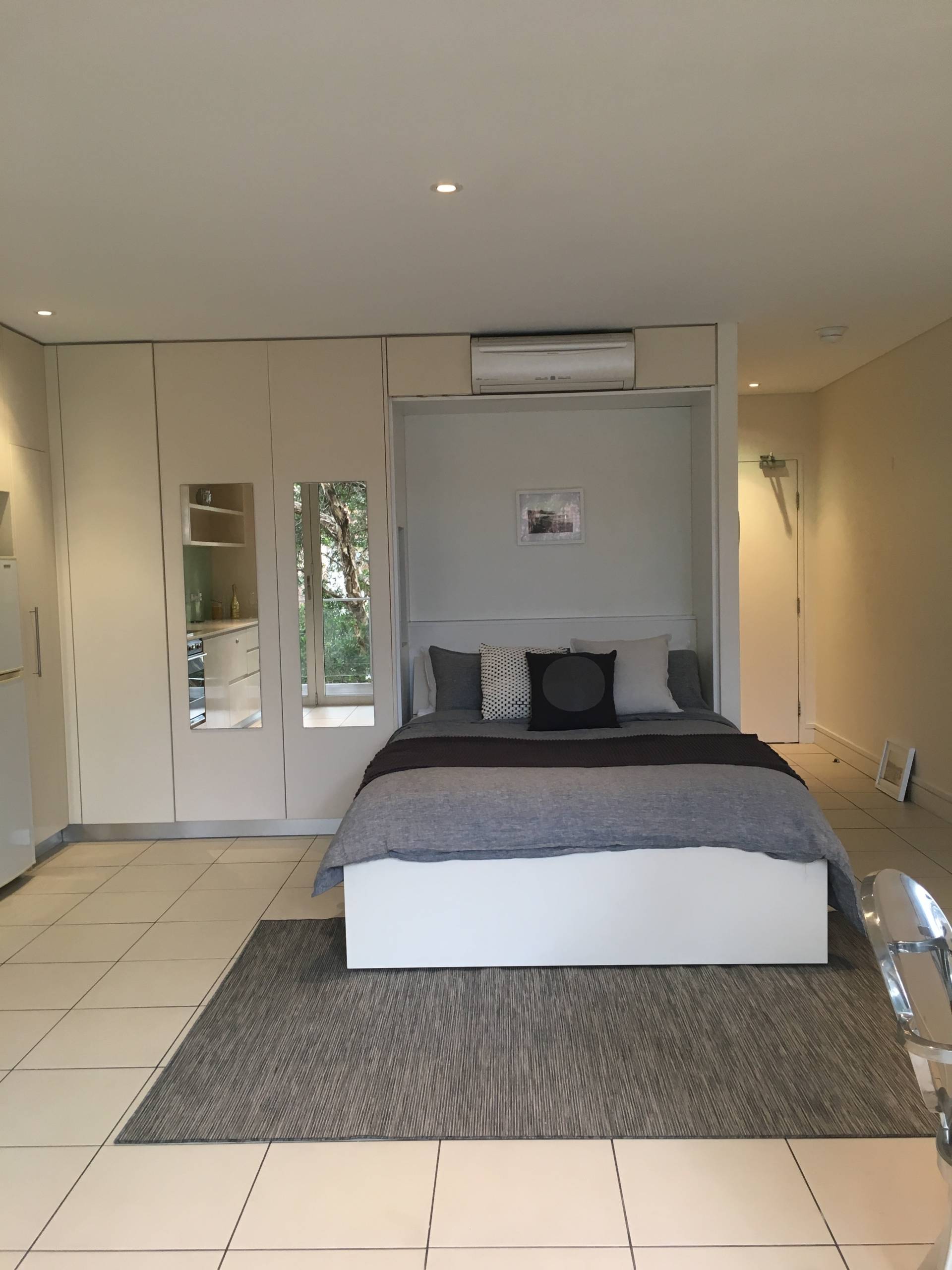 This large stylishly presented furnished studio offers a sleek modern living space, which flows effortlessly onto a private terrace, a modern bathroom with internal laundry facilities (washing machine and dryer) and air conditioning.