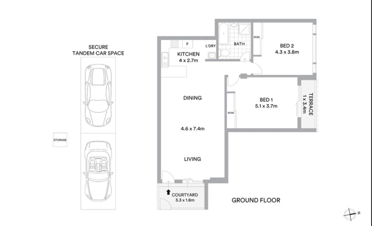 Please note: new kitchen configuration different to floorplan, correct as in photo provided. Also, storage cage shown in floorplan not provided with tenancy.