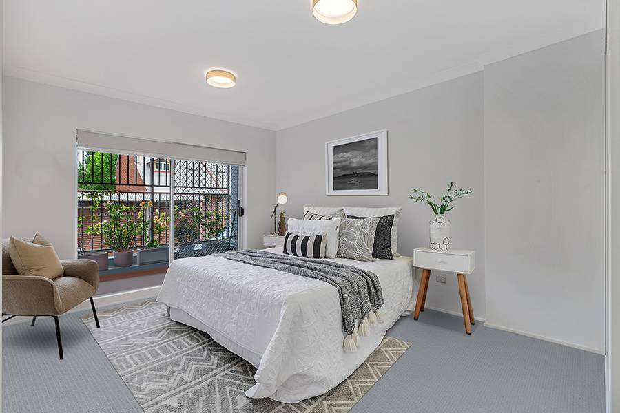 The apartment is beautifully renovated throughout with spacious interiors capturing a delightful, private, leafy outlook overlooking the building’s inviting outdoor swimming pool. A well-appointed kitchen with dishwasher and microwave flows into the friendly open plan living/dining space. The crisp near new bathroom with full sized modern bath is adjacent to 1 king sized and 1 queen sized bedroom both with huge built in wardrobes.