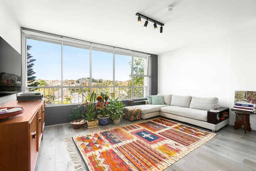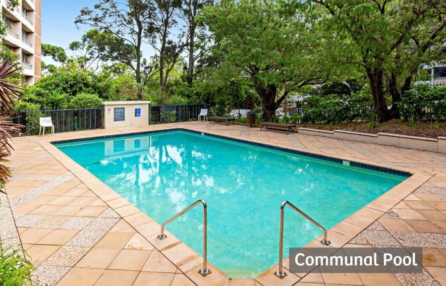 The apartment is situated on level 5 with lift access and is beautifully renovated throughout with an open plan interior capturing a delightful, private, leafy outlook framed by large picture windows. A friendly kitchen with breakfast bar and European appliances flows into the open plan living/dining space. The crisp near new bathroom is adjacent to the two well proportioned bedrooms both with built in wardrobes. To complete this wonderful offering the sought after building has a large shared outdoor swimming pool, grassed area with further water views and a children’s playground.